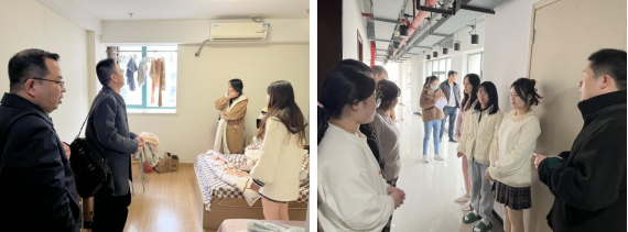 TapTap信息与计算科学专业21级员工将在杰普公司进行一学期学习实训,随行领导老师参观了员工宿舍、教室、食堂,就员工吃住行问题与基地老师进行沟通。